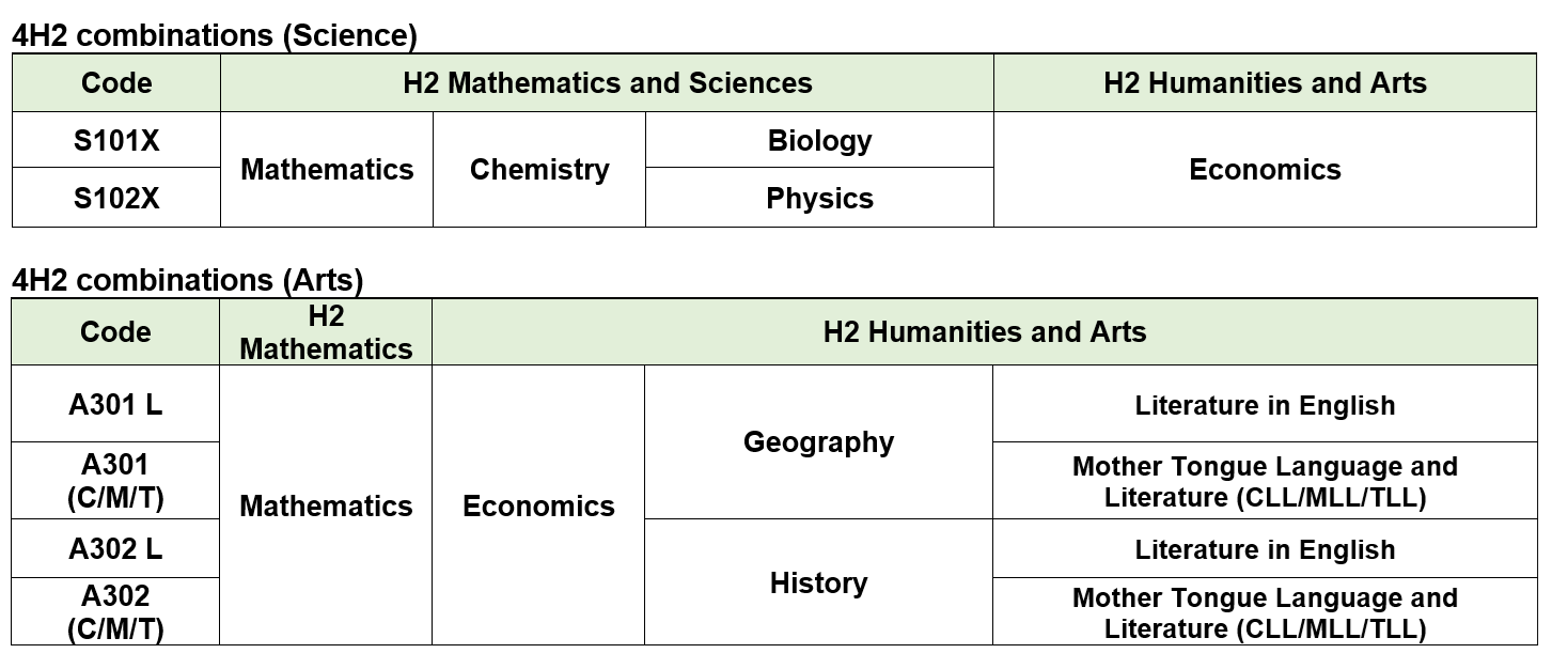Students who are eligible and keen to take a 4H2 subject combination must still indicate a 3H2 subject combination as one of their choices during subject registration.